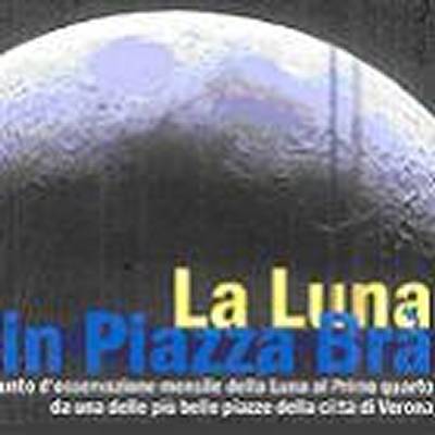 Organizzata dal CAV Circolo Astrofili Veronesi e patrocinata dall’Assessorato alle Politiche Giovanili del Comune di Verona, è una iniziativa gratuita replicata con scadenza mensile per offrire a tutti i cittadini e in particolare ai giovani, la possibilità di scrutare la luna da vicino. Ogni mese, al primo quarto di luna crescente, se le condizioni atmosferiche non sono assolutamente sfavorevoli, appassionati e curiosi troveranno una serie di telescopi a loro disposizione in Piazza Bra, per volgere il naso all’insù e ammirare la Luna e i Pianeti. Per la conferma delle date e degli orari consultate il sito www.astrofiliveronesi.it *In caso di pioggia l’osservazione sarà annullata Circolo Astrofili Veronesi “Antonio Cagnoli”, associazione nata nel 1977, che attualmente conta tra le sue fila oltre 190 soci.