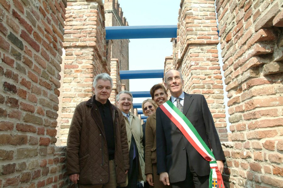 Nella foto di Antonella Anti (Studio Click) Inagurazione dei camminamenti di Castelvecchio con Installazione di Herbert Hamak (primo a sx). Si riconoscono il Vice Sindaco e Assessore alla Cultura Maurizio Pedrazza Gorlero, la Gallerista Hélène De Franchis, il direttore del Museo Paola Marini e il Sindaco Paolo Zanotto